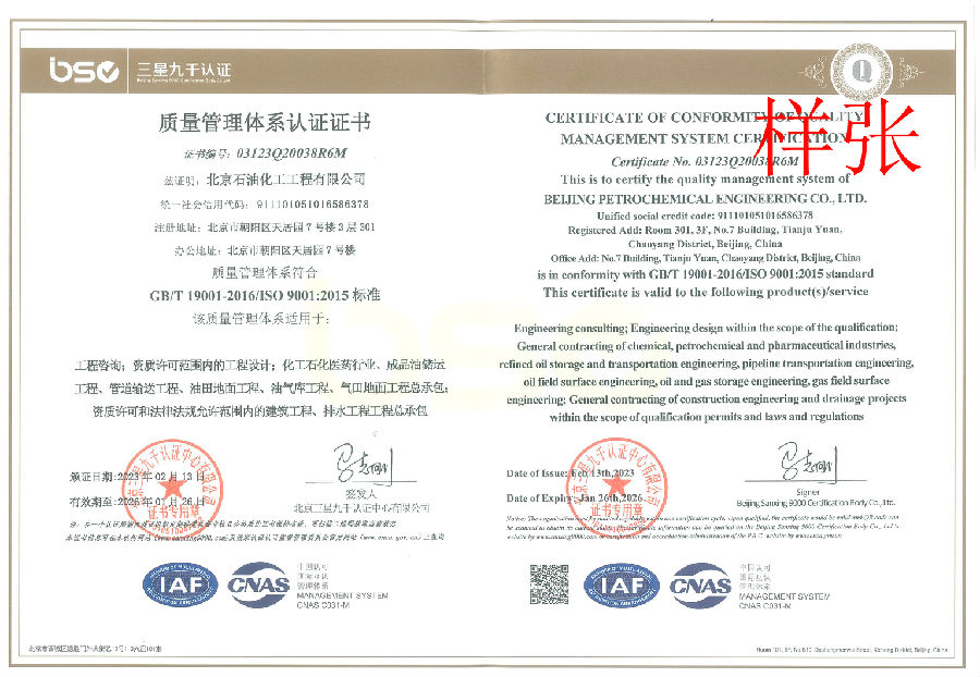 電力行業(yè)(新能源發(fā)電)專(zhuān)業(yè)乙級(jí);建筑行業(yè)(建筑工程)乙級(jí);商務(wù)糧行業(yè)(成品油儲(chǔ)運(yùn)工程)專(zhuān)業(yè)乙級(jí);石油天然氣(海洋石油)行業(yè)(管道輸送、油田地面、油氣庫(kù))專(zhuān)業(yè)乙級(jí);市政行業(yè)(排水工程)專(zhuān)業(yè)乙級(jí)。