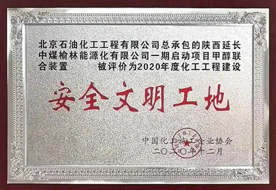 近日,從中國化工施工企業(yè)協(xié)會(huì)傳來喜訊,由公司總承包的榆能化一期啟動(dòng)項(xiàng)目填平補(bǔ)齊工程甲醇聯(lián)合裝置2線和40萬噸/年聚丙烯裝置被授予“2020年度化工工程建設(shè)安全文明工地”稱號(hào)。