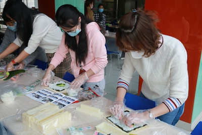 在這個(gè)屬于“女神”的節(jié)日里,工會組織女職工進(jìn)行了一場愜意又休閑的手工制作活動。工作人員將事先準(zhǔn)備好的制作壽司、雪媚娘等食品所需要的原材料在職工食堂擺放整齊,讓大家親自動手進(jìn)行制作。制作過程中,大家親密交談,協(xié)同制作,在忙碌的工作之余度過了一段難忘的午后時(shí)光。