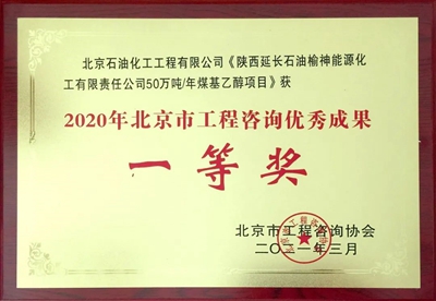 近日,從北京市工程咨詢協(xié)會傳來喜訊,由公司申報的《陜西延長石油榆神能源化工有限責任公司50萬噸/年煤基乙醇項目》和《延969井區(qū)地面集輸擴能改造工程》分別獲得2020年北京市工程咨詢優(yōu)秀成果一等獎和三等獎。