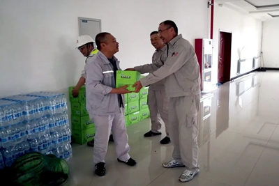 由公司EPC總承包的榆神能化50萬噸/年煤基乙醇項目,自開工以來,項目建設者堅守一線,組織施工建設、排查安全隱患、提供技術支持、嚴控質量關。目前,正值項目安裝施工大干時期,項目全員時刻緊盯現(xiàn)場,即使酷熱難耐,也要堅守崗位。考慮到項目現(xiàn)場艱苦環(huán)境,近日,公司工會在項目現(xiàn)場開展了"送清涼"活動。