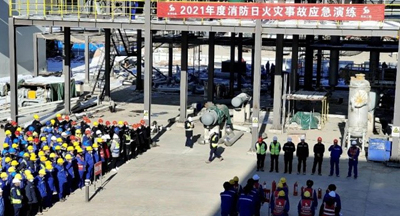為切實(shí)做好項(xiàng)目的消防安全工作,確保冬季施工平穩(wěn)有序推進(jìn),近日,北京石油化工工程有限公司總承包的榆神能化50萬噸/年煤基乙醇項(xiàng)目現(xiàn)場舉辦了“2021年度消防日火災(zāi)事故應(yīng)急演練”。項(xiàng)目參建各方代表200余人參加了本次演練。