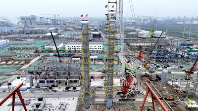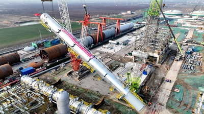 全球最大規(guī)模安徽碳鑫60萬(wàn)噸/年煤基乙醇項(xiàng)目超百噸大塔順利吊裝