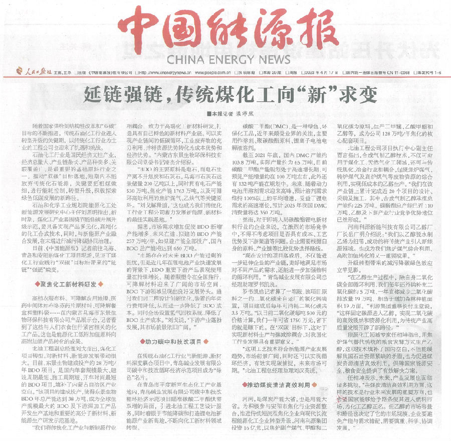 北油工程:延鏈強(qiáng)鏈,傳統(tǒng)煤化工向“新”求變