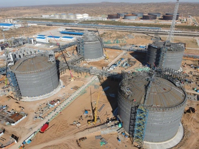 截至目前,該項(xiàng)目1#、2#罐開(kāi)始充水試驗(yàn),3#、4#罐主體焊接已處于收尾階段,該節(jié)點(diǎn)比原計(jì)劃提前19天完成。
