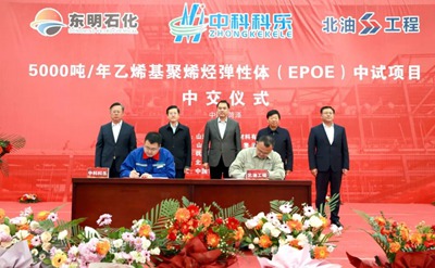 11月18日,由北京石油化工工程有限公司總承包的東明中油燃料石化有限公司5千噸/年乙烯基聚烯烴彈性體(EPOE)中試項目順利中交,標(biāo)志著項目全面由建設(shè)階段轉(zhuǎn)入試運行準(zhǔn)備階段。