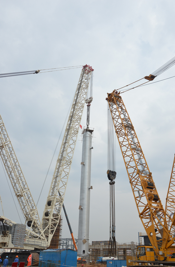 2013年9月3日上午9點(diǎn)18分,712項(xiàng)目加氫裂化固定床反應(yīng)器吊裝工作正式開始,11點(diǎn)18分反應(yīng)器吊裝完成,用時(shí)兩個(gè)小時(shí),獲得一次性成功。這次吊裝成功,不僅彰顯著作為項(xiàng)目最核心裝置之一的固定床順利安裝到位,更重要的是我公司駐外項(xiàng)目積攢了豐富的經(jīng)驗(yàn),為今后大型設(shè)備安裝工作夯實(shí)了堅(jiān)實(shí)的基礎(chǔ)。