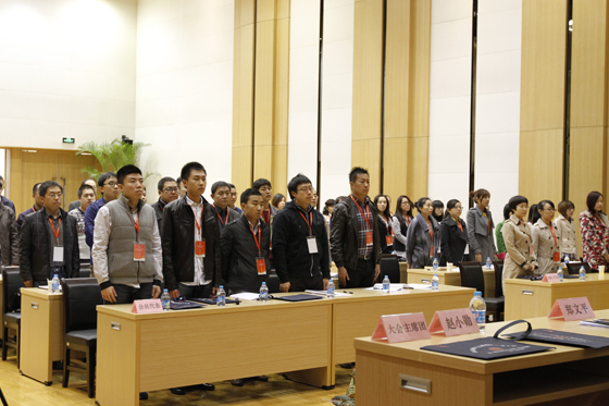 大會(huì)奏國(guó)歌,全體會(huì)員代表起立。 攝/馬嘉
