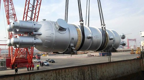 世界最大產(chǎn)能甲醇合成塔運抵延能化項目現(xiàn)場